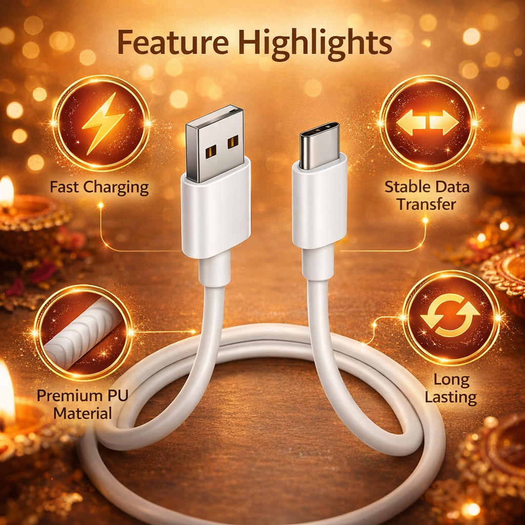 • 🔌 USB-A to Type-C Cable – Works with smartphones, tablets, and USB-C gadgets